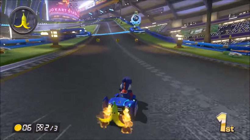 Observe also the density of sounds, explosions, shakes, bumps, funny character faces, flames, coins, stars, etc. Even if you are really bad at racing, the sheer quantity of in-game interactions makes this game an exciting experience.